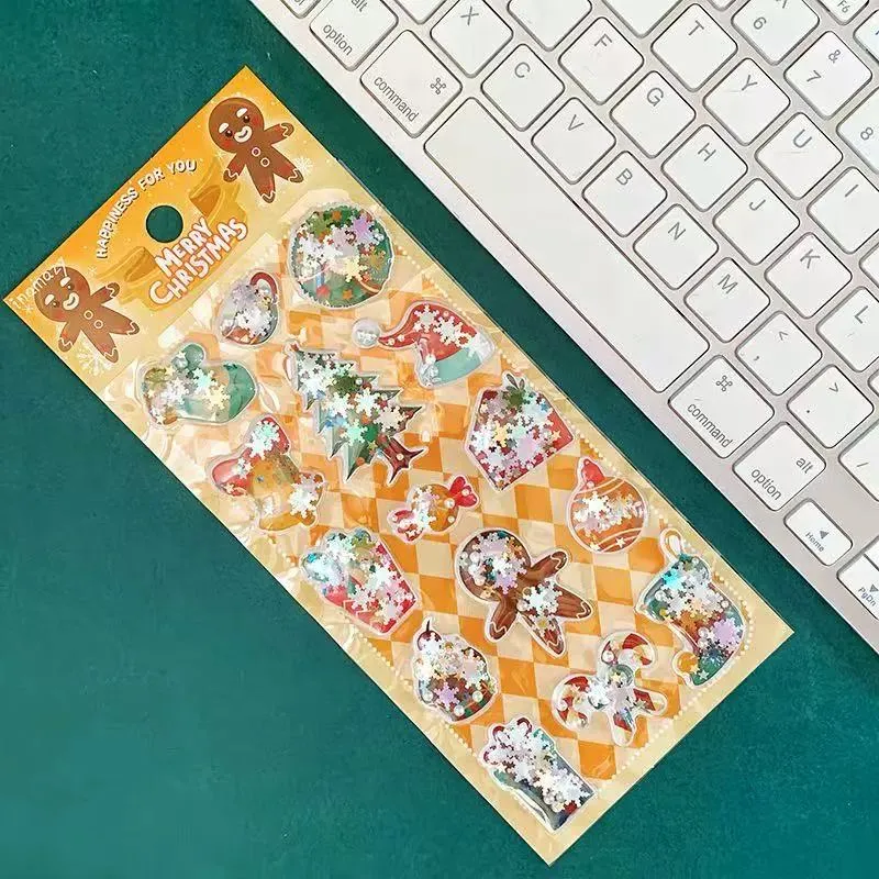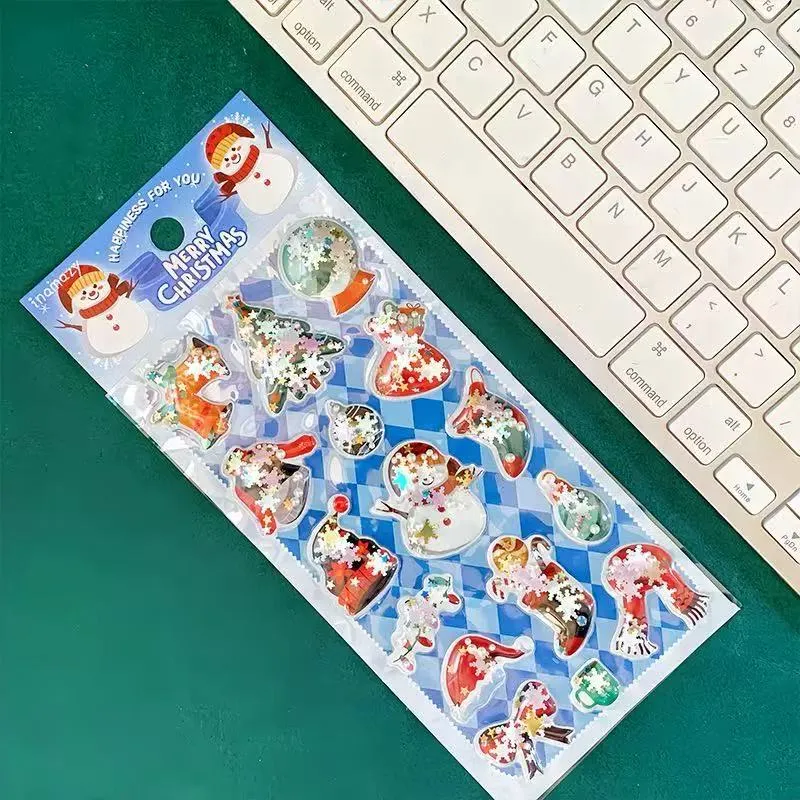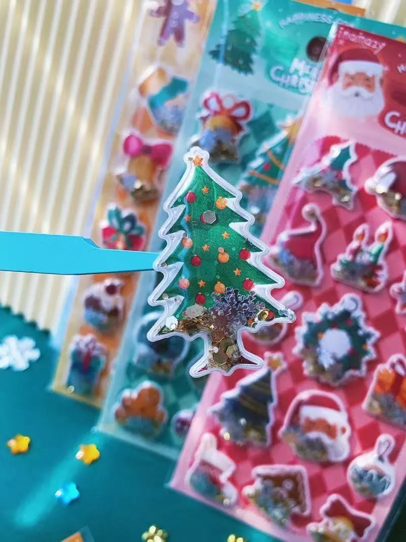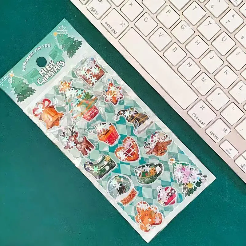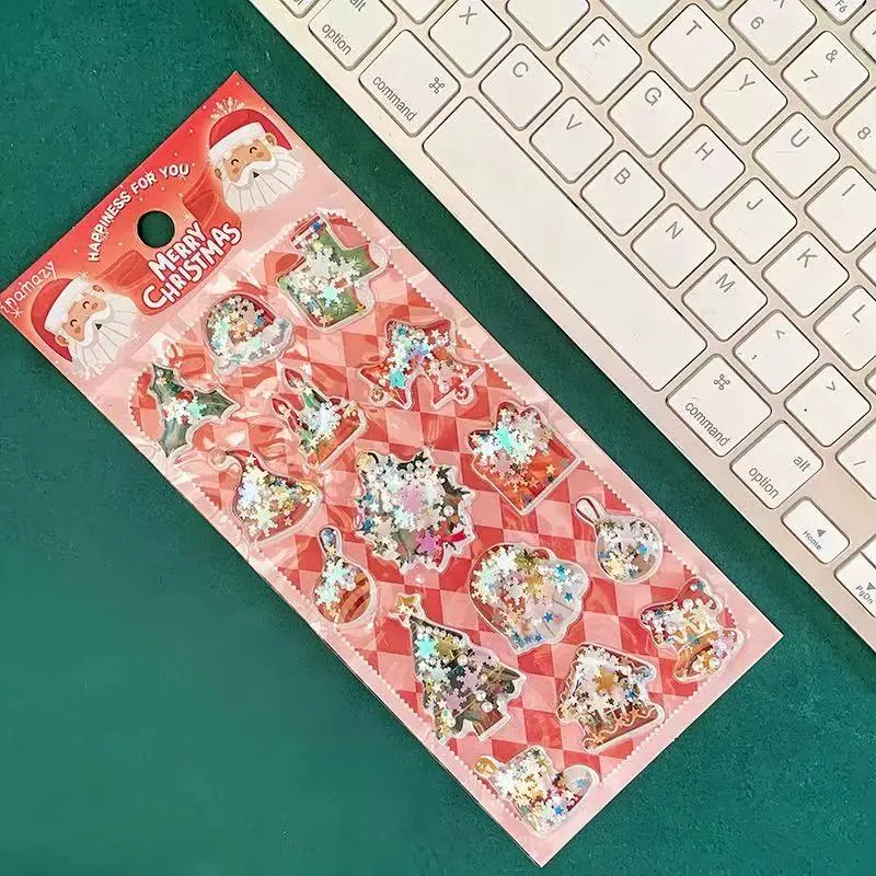 JOJO Pack Christmas shaker stickers are a type of decorative sticker with a raised 3D effect. The patterns on these stickers stand out from the surface, creating a textured feel. They often feature classic Christmas designs like snowflakes, Santa Claus, reindeer, and holly. These stickers are both beautiful and fun to touch. They are widely used for holiday decoration.