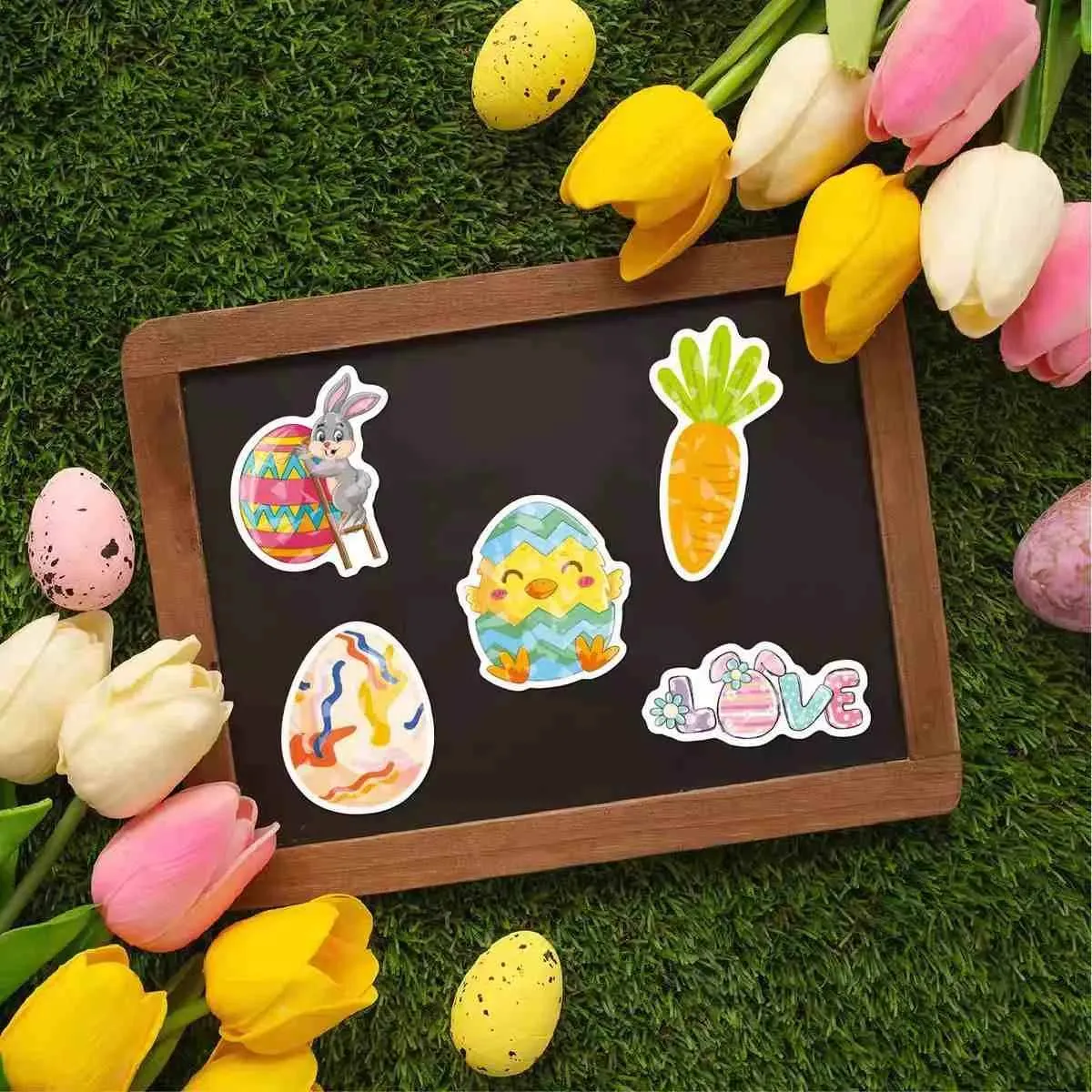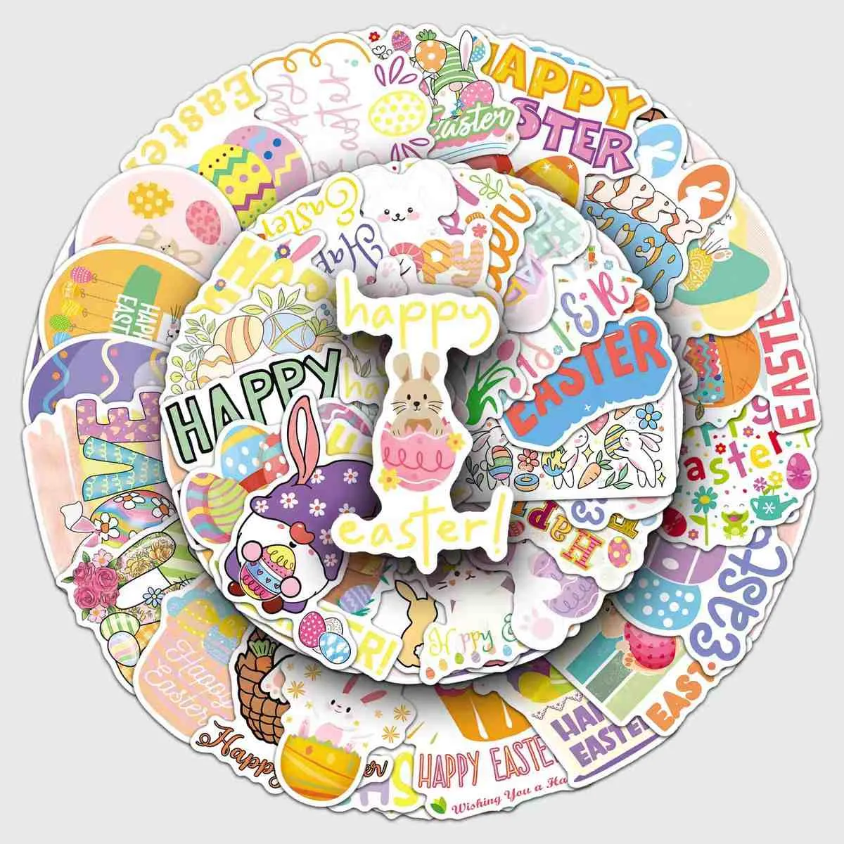 Suitable for various Easter uses: small stickers for eggs or chocolate shells, medium for gift boxes and baskets, and large for window displays. Removes easily without residue from surfaces like glass, plastic, or wood.