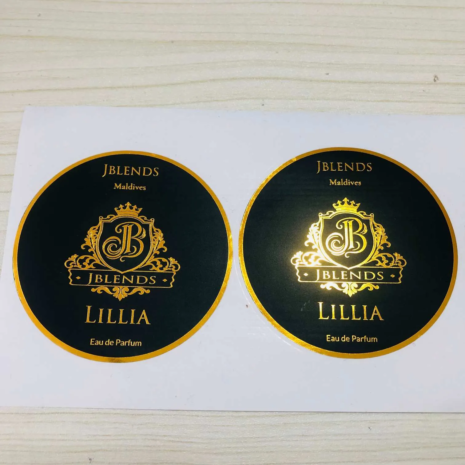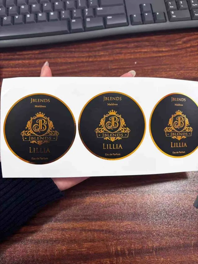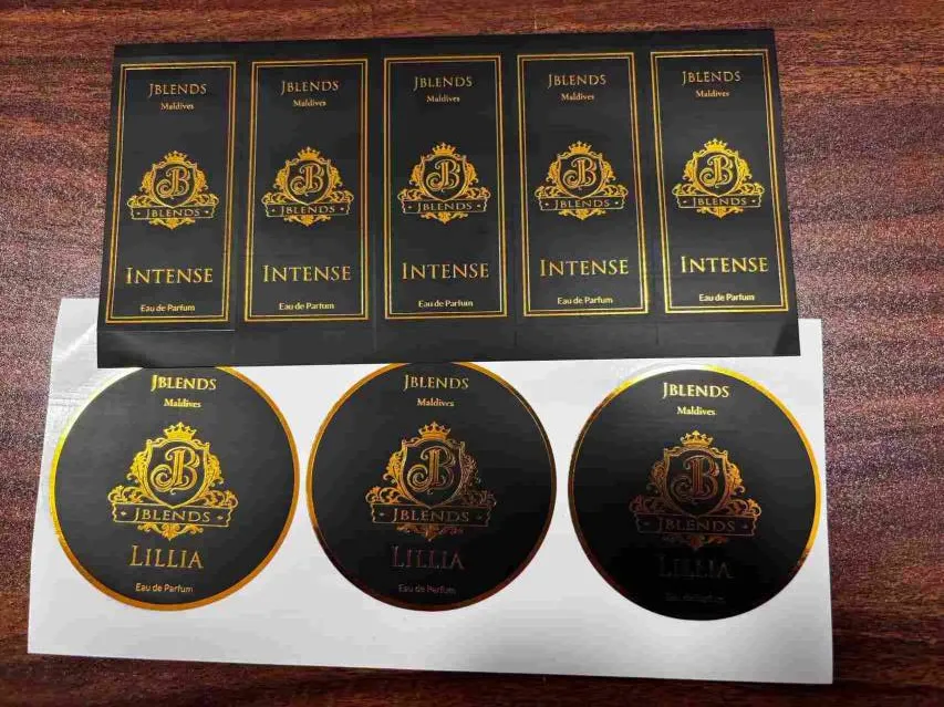 This product produced by jojo pack is a decorative hot-stamped label specifically designed for perfume bottles. Crafted from a composite substrate that meets both food-grade and high-end decorative standards, it undergoes a multi-stage production process involving precision die-cutting, professional hot stamping, and protective lamination. The result is a label that is waterproof, scratch-resistant, and fade-resistant; it conforms perfectly to the contours of the perfume bottle—without curling at the edges or peeling off—and is compatible with a wide variety of bottle materials, including glass, plastic, and ceramics. The hot-stamping process utilizes high-purity gold and silver foils, as well as various colored stamping materials, to deliver a rich luster and refined texture. It allows for the creation of diverse visual effects—such as matte, glossy, and brushed finishes—and is complemented by flexible customization services designed to meet the unique requirements of different brands and styles. Whether the desired aesthetic is minimalist-luxury, vintage-elegant, or niche-individualistic, this label ensures a flawless presentation.