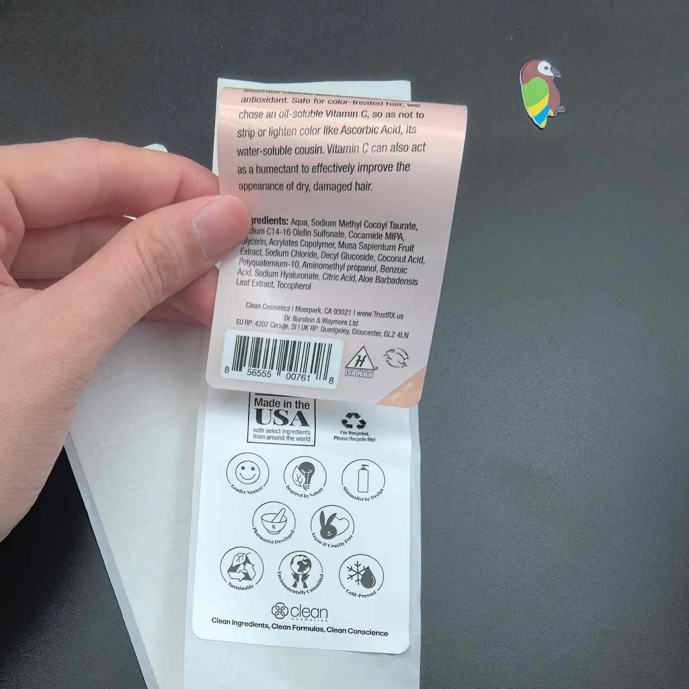 Cosmetics have strict regulatory requirements for information disclosure, such as mandatory listing of ingredients in accordance with FDA or EU regulations. At the same time, brands need to convey brand concepts and product selling points. MultiLayer for cosmetic labels perfectly balance these two needs, they comply with regulations by carrying complete information and help brands enhance product competitiveness through organized and attractive information presentation.