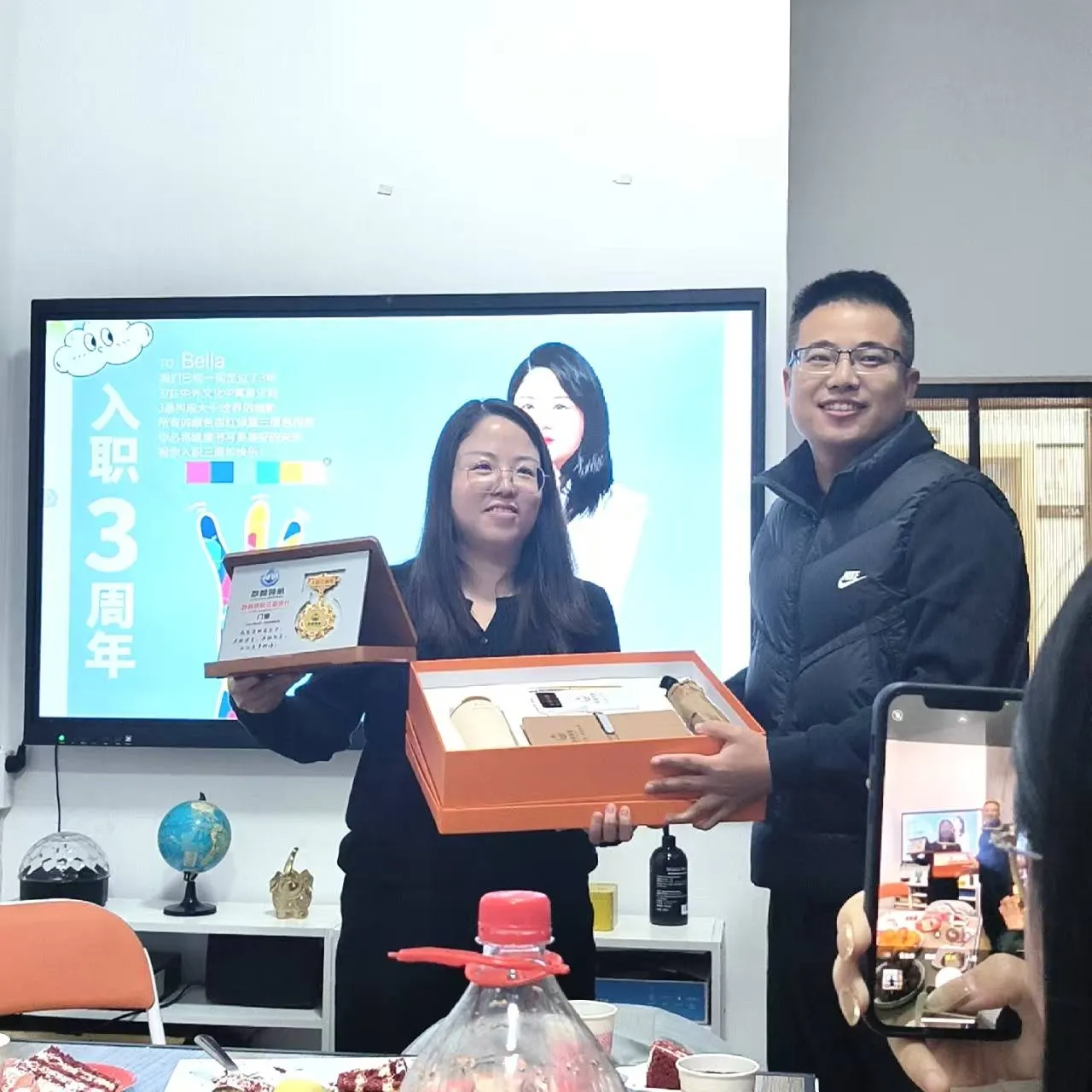 As a wonderful surprise, Boss Gao also personally presented beautiful work anniversary gifts to Tom and Ella, and Manager Bella. These special tokens are a sincere acknowledgment of their contributions over the past years and carry our best wishes for their continued growth with the company.