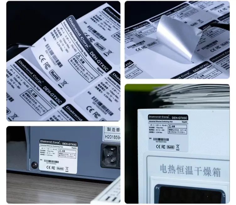 PET white/matte silver: Heat-resistant up to 150℃, suitable for nameplates on home appliances and power adapters.
