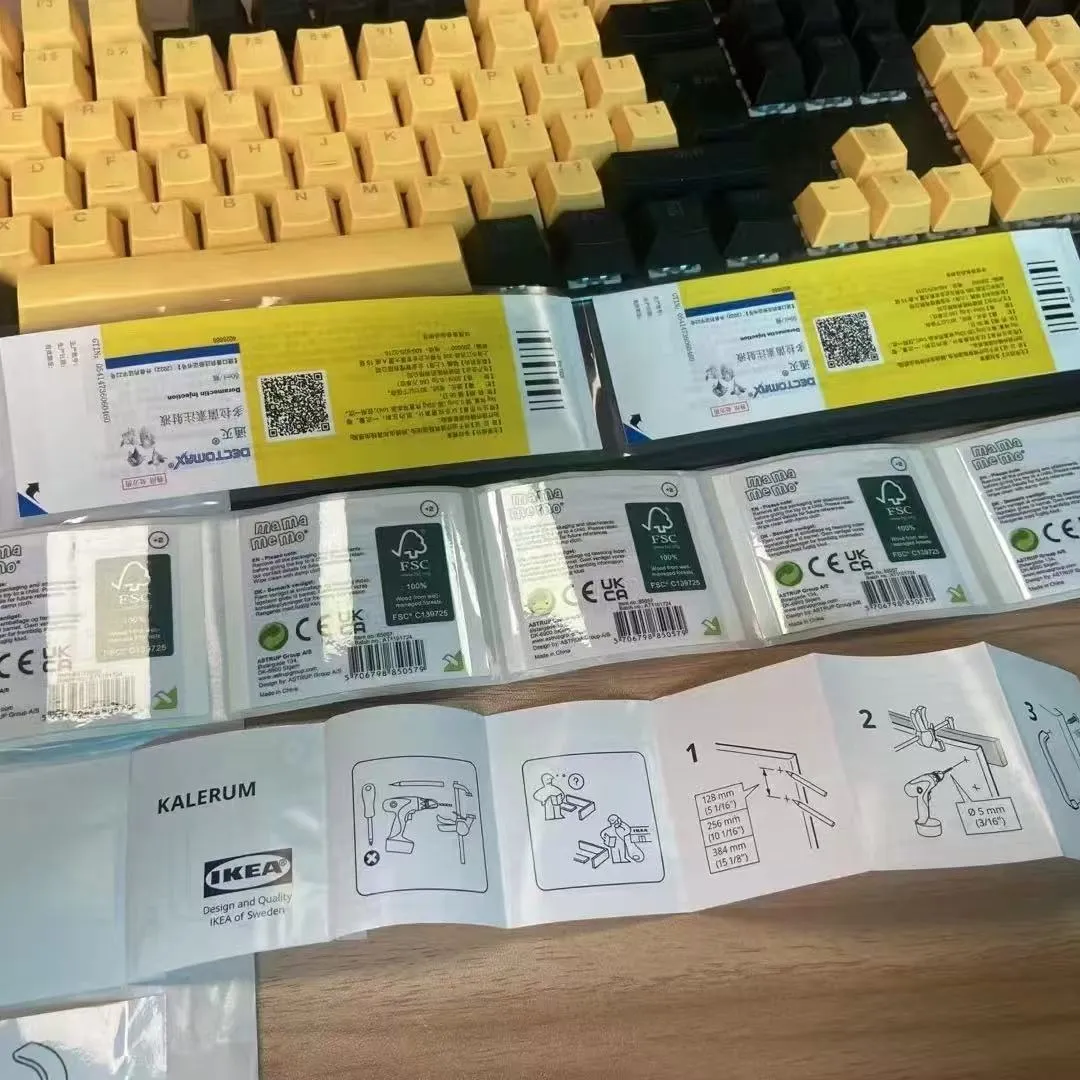 Folded labels provide several times the printing space of their coverage area on extremely limited product surfaces, such as bottle bodies, test tubes, and small electronic devices. The information of folded labels is layered: the outermost layer is summary information, such as product name and logo, and the inner layer is detailed information, such as ingredient list, usage instructions, barcode, multilingual translation, etc.