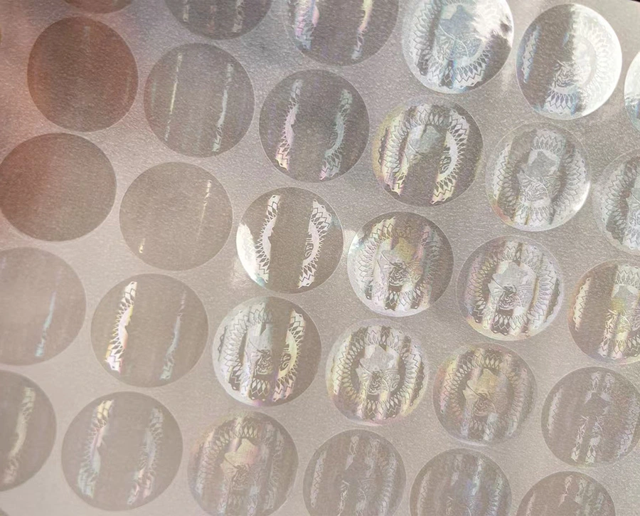 Holographic Pattern Hot Press Transfer Printing: The imprinting equipment with a metal template is preheated to a specific temperature and subjected to precisely controlled pressure. Subsequently, the vinyl material with the already printed ordinary pattern is closely adhered to the metal template. This process not only ensures that the holographic pattern is firmly attached to the label but also guarantees the perfect presentation of the pattern's details and three-dimensionality. From different angles, it can display a unique brilliant effect like a rainbow.