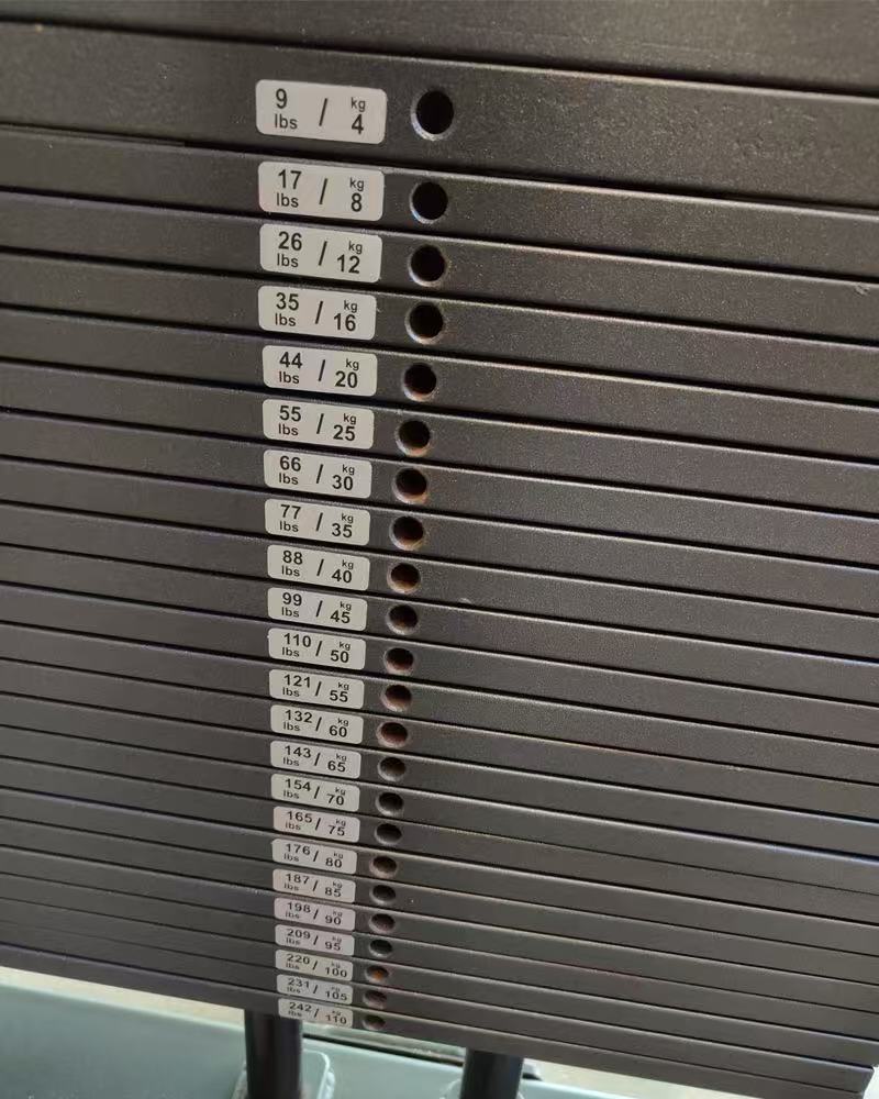 Each sticker is clearly marked with weight values, enabling users to quickly identify and select weight blocks suitable for their training intensity, and avoid frequent weighing during workouts.