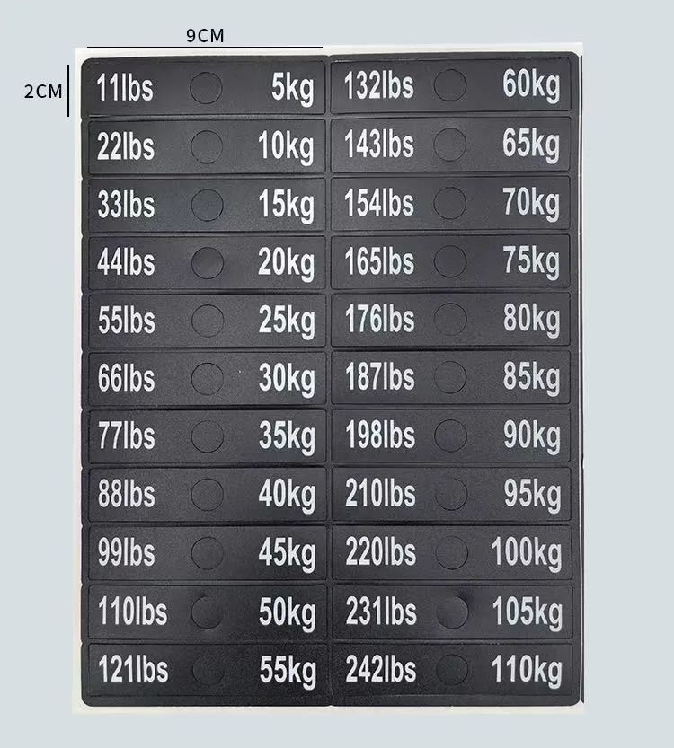 Crafted from premium-quality materials, these stickers are resistant to wear and tear from daily use. The printed text remains sharp and fade-free throughout the service life of the fitness equipment, ensuring long-lasting performance. With clear weight markings, users can better track their fitness progress and set training goals, achieving scientific training management.